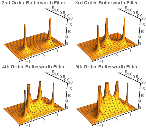 Response of 5th Order Butterworth Filter over the Left-Half Complex Plane.